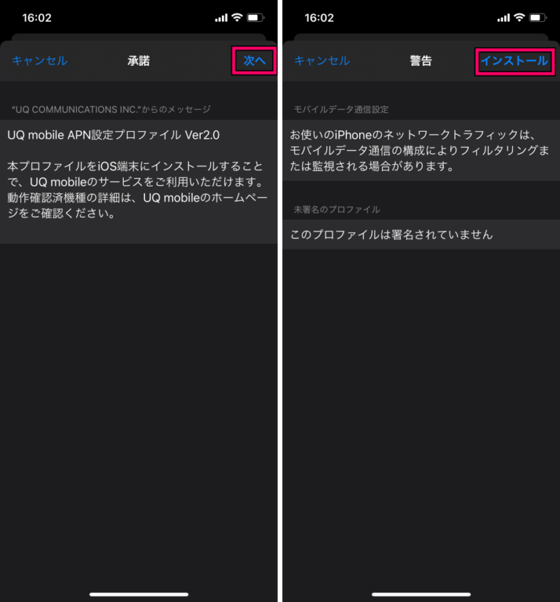 UQモバイルでiPhone12を使うための設定方法・手順(プロファイル設定)