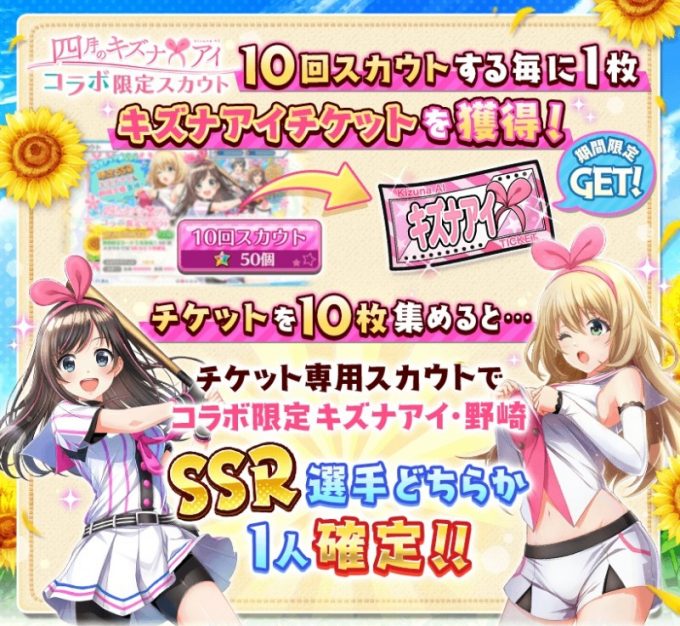 期間限定でコラボスカウトも開催中です⚾#KizunaAI #キズナアイ#ハチナイ #コラボ pic.twitter.com/DvfBiR4TE8