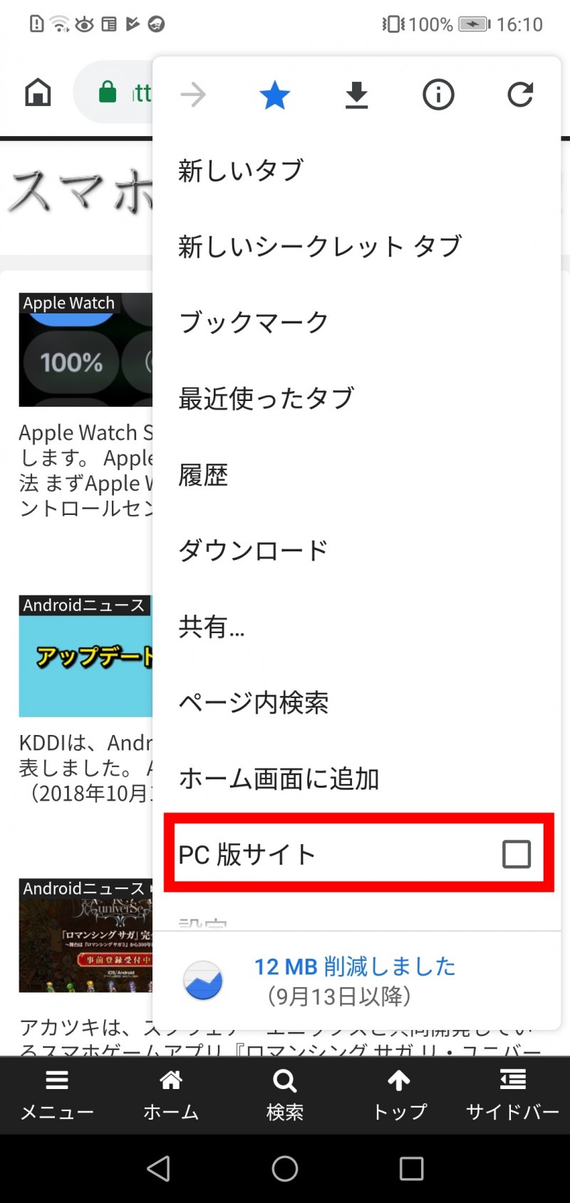 AndroidスマホのChromeアプリでPC表示に切り替える方法